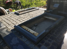 Так выглядит место захоронения после укладки установки памятника и укладки брусчатки
